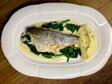 Філе Грецького Сибаса зі Шпинатом, Картопляним пюре Муслін та соусом Бер Блан (300)