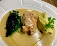 Томлений Кролик у Вершковому соусі з гірчицею Діжон, Шпинатом та Картопляним пюре Муслін (390)
